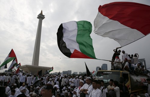 Tens of thousands of Indonesians protested Sunday against the US decision to recognize Jerusalem as Israel's capital, the latest show of support for the Palestinians in the country with the world's largest Muslim population.