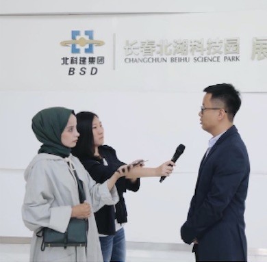 Daily Sabah's Ayşe Betül Bal (L) speaks to Liang Xiao during her visit to Beihu Science Park.
