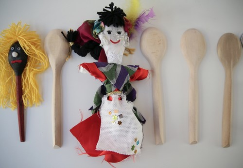 This unique craft is formed by crossing two wooden spoons to make the form of two arms before it is wrapped in clothing and local fabrics to take its final form as a "çömçe gelin."