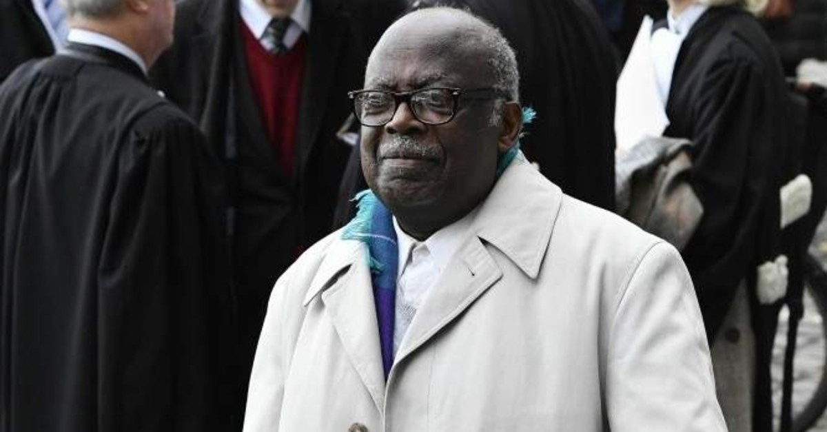 Rwandais Fabien Neretse is pictured in front of the Palace of Justice on the first day of his trial, Brussels, Nov. 4, 2019. (AFP Photo)