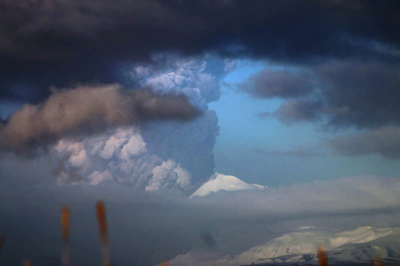 The agency has raised the volcano alert to its highest level, which warns of hazards both in the air and on the ground. An image of the volcano posted on the Alaska Volcano Observatory website showed a thick streak of light grey ash arcing up out of the peak and streaming sideways across the sky.