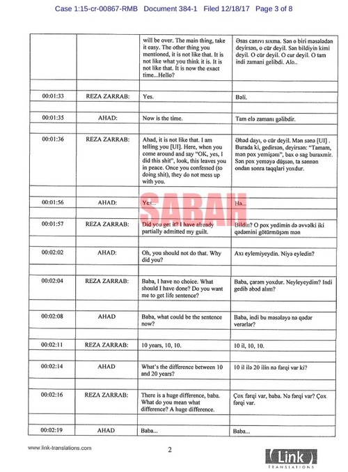 "Ahad, it is not like that. I am telling you. Here, when you come around and say 'OK, yes, I did this s***,' look, this leaves you in peace. Once you confessed, they do not mess up with you." This was the exact sentence and an apparent confession of a plea bargain between the U.S. judiciary and Reza Zarrab, a Turkish-Iranian gold trader who is now a witness in a trial held in New York on now-lifted U.S. sanctions against Iran.