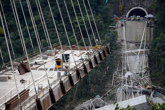 The disaster occurred around midday on the bridge, which is due to connect sections of the highway that runs from the capital Bogota to the city of Villavicencio in an area known as Chirajara.