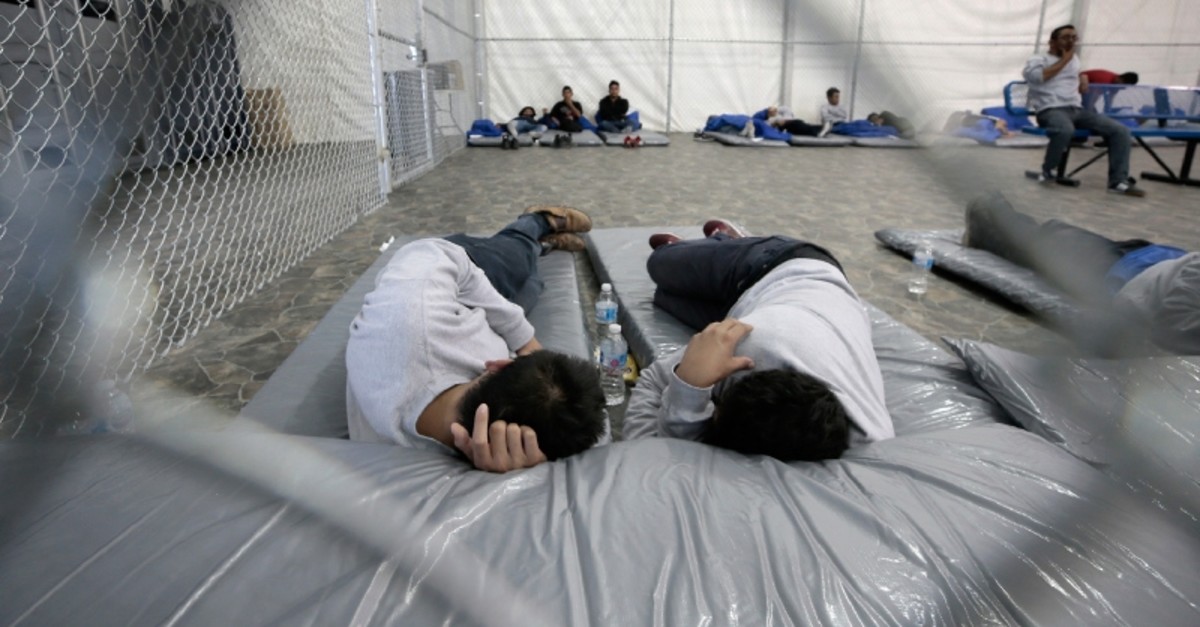 Migrants nap in the new soft-sided migrant holding facility in Tornillo, Texas Thursday, Aug. 15, 2019 (AP Photo)