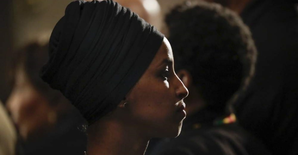 Rep. Ilhan Omar of Minnesota attends the memorial service for Rep. Elijah Cummings at the U.S. Capitol in Washington, Oct. 24, 2019. (EPA Photo)