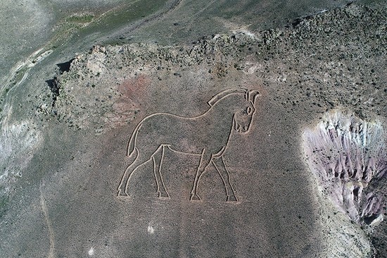 Rogers' land art harks back to the Nazca lines in Peru, giant figures made of the natural rock that are only visible in their entirety from the air. Two hundred and thirty people of all ages lifted and placed the stones according to Rogers' plans. Around 11,000 tons of stone were used in the sculptures, which can be seen from a height of up to 450 kilometers (280 miles). They can even be spotted on Google Earth.