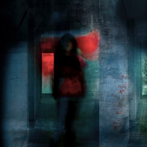 The eponymous work of the show resembles a dream. Although with difficulty, one can just make out the surface of a door and a longhaired woman about to enter a building. The image is largely dark and the contrasts between the greens of one part and the black of the rest strengthen its effect.