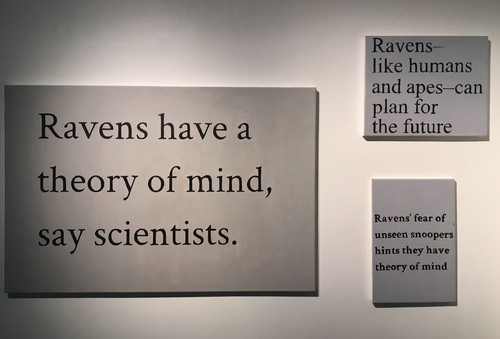 "Ravens have a theory of mind, say scientists" (2018) is a text-based work by Deniz, who meant to show the indirect relationship between animals and human beings.
