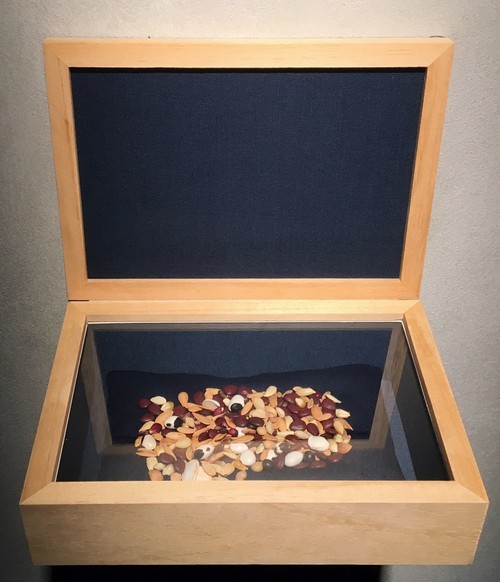 Entering the basement loft where Deniz exhibits her solo show, the first piece is a collection of heirloom seeds.