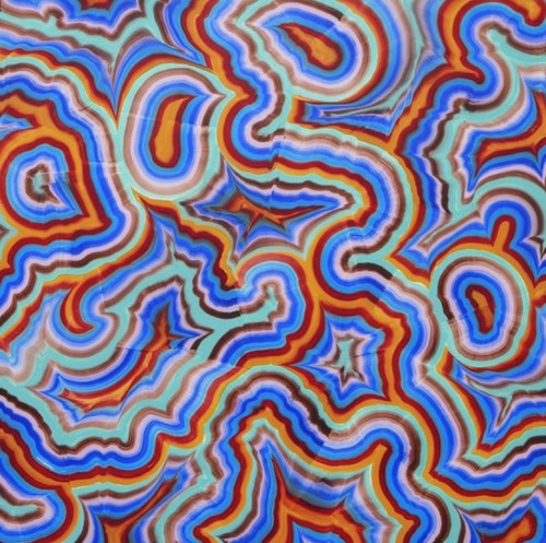 Instead Frize has turned his canvases into sites of radical democracy. In "Melia-sept" (acrylic and resin on canvas, aluminum chassis), there is a fine ambiguity around the colorful lines that fill the canvas. It is difficult for the viewer to tell the foreground from the background, the center from the margin, the dominant from the passive. All colors stand in balance. This produces a sense of vitality and the effect on the viewer is curious: One gets lost in the colors and their democratic coexistence but then excavates a certain calm from them.