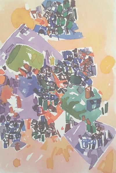 "Ibrahim is more abstract than me, and more emotional. He always remembers his mother's dress, his village. For me, art happens in other ways. Most people like the colors of my works and find the simple concept interesting. It's not specifically Aleppo that I'm painting. Aleppo is a metaphorical concept. Aleppo is every city, all of the empty cities. Color for me is about offering the scene, and a new way to paint," said Ala Alhassoun at MARSIstanbul as he minded the space while painting at its street entrance on Bostanbaşı Avenue before entering beneath Arabica Trading House. "Watch color and power. In the empty city, we are not here. There is always change. My workshop changes all of the time too. I'm working all of the time everywhere. I like to paint outdoors in Istanbul. It's the city of light, not Paris [laughs]."