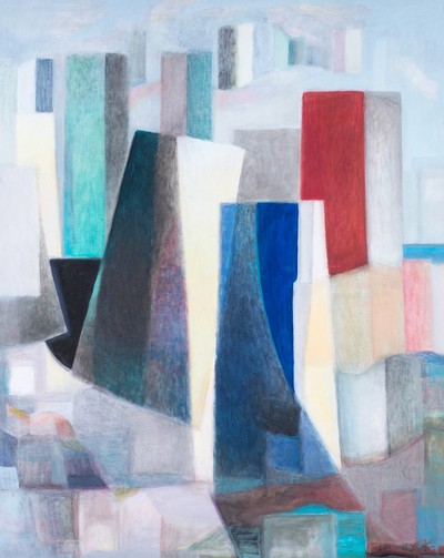 "City" by Ursula Soltermann Katipoğlu depicts city views like memorial statues.