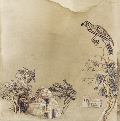 The works appear as out of time, like a fictive Borgesian codex transmitted from another dimension, as in the internationalist Argentine's story, "The Book of Sand." The antiquated visage of his paintings evoke the illustrated leaves of an ancient manuscript, vitalized with contemporary immediacy. Each painting pulses with his impassioned attempts to assimilate the Sufi understanding of "insan-ı kâmil," from the Turkish for the perfect human, into approachable art visible to Western eyes. To express the internalization of totality, he expanded the notion of personal space, and growth, to intergalactic proportions, bridging cosmic divergences and cultural paradigms.