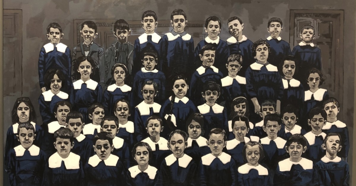 "Standart" is the first show that Bayık curated. ADAS is run by collector Ömer Özyürek, whose proletarian egalitarianism is evident. He can be seen at openings carrying rubbish out to the street in between bursts of hobnobbing. The modest persona of Özyürek and the works at "Standart" maintain a certain subtle continuity. The mixed media painter İhsan Oturmak dramatized the emotional uniformity of schoolchildren with his canvas, "Innovation II" (2013). Oturmak contrasts darker and lighter hues to bring out the enigmatic gloom of childhood under the provincial contexts of obedience and authority. His palette accents darkness where Blanc's work turned pale. "Innovation II" adapts the downcast stoicism of girls and boys posing for an official class photograph in Ankara. In likeminded fashion, the draftsman Yuşa Yalçıntaş reflects on his trial of uniformed primary education in Turkey's heartlands.