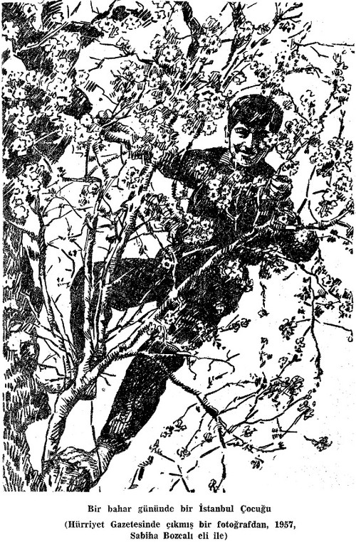 ''A child in Istanbul during a spring day'' - A drawing by Sabiha Bozcalı from the Istanbul Encyclopedia Volume 4.