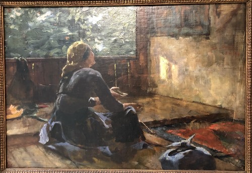 Within the frame of "Muslim woman praying," the flowing, purple dress of the believer covers the mat that she would use for her prostration. She holds one hand out, and, in a painterly gesture that could be interpreted as sympathetic to the authenticity of the Islamic faith, a glowing light is cast against the wall where she is pointing, as proof of divine intervention. Painted with techniques and colorations similar to "Boy in a fez" by Nikephoros Lytras, Savvidis worked during a divisive political moment, yet through art, became intimate with the other.