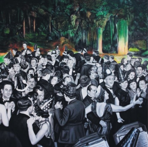Composing artworks in figurative, utopian, surreal frames within context of time, extent and space, Sayat Uşaklıgil seeks to create ironic integrities in his body of work. Made with acrylic paint, his paintings showcase alternative and multi-dimensional realities in a figurative density and a spatial depth. Portraying innocent, merry figures and laughing, smiling, often fun moments; the artist creates a synthesis based on absolute reality with its surroundings, but also on nostalgia with figures in a collocation of the past and today. The artist creates striking harmonies utilizing monochrome and array of bright colors. He opts for Baroque in its dynamism and vivid colors and shapes in motion with flashy and flamboyant colors of his own. In this way the joyous states and active movements of the images on the canvas are further invigorated and blended in a coherence of color and form.