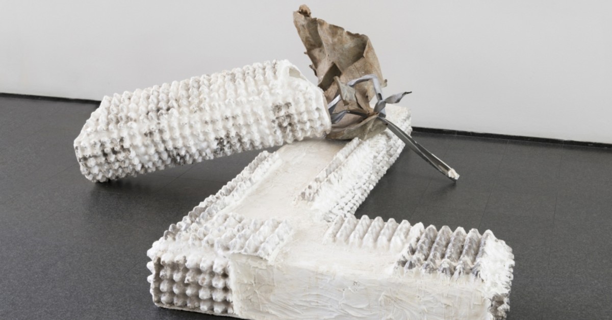 With scrap metal, wax, burlap, plaster and egg cartons, the Berlin-based Palestinian artist Jumana Manna, born in 1987, sculpted "Kollek, Olmert, Lupolianski and Barkat's Picnic in Silwan, Lord Kitchener's Neck" (2014). Its aesthetic is ruinous, though not of the ancient variety, though her area of focus is Jerusalem. Instead, she underpins the plastic manifestations of social incongruity and the inertial state of conflict that ensues in contested environments.
