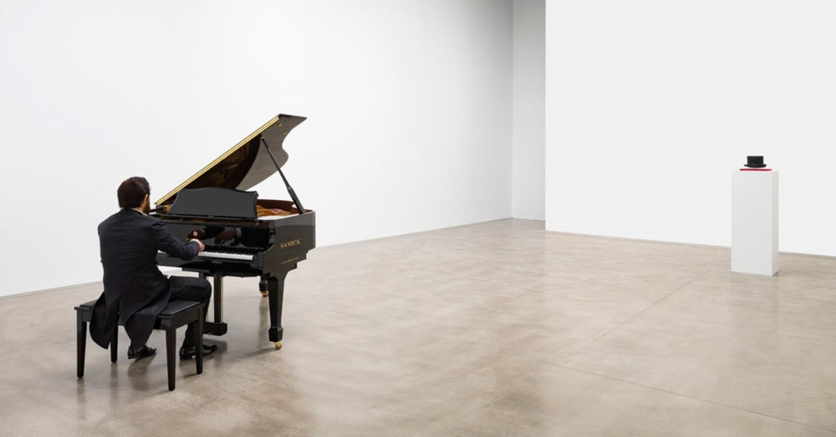 The human body is arguably Altındere's main subject for the show at Yapı Kredi. In dress and street attire, he has paid meticulous attention to hair and posture. On entering the initial exhibition hall, a white cube resounds with a self-playing piano. Eerie, minimalistic tones emanate from the unmoving fingertips of the bearded, tuxedoed pianist. The silicon sculpture, "Magic Piano" (2019) begs a close-up, as the degree of its realism is unsettling.