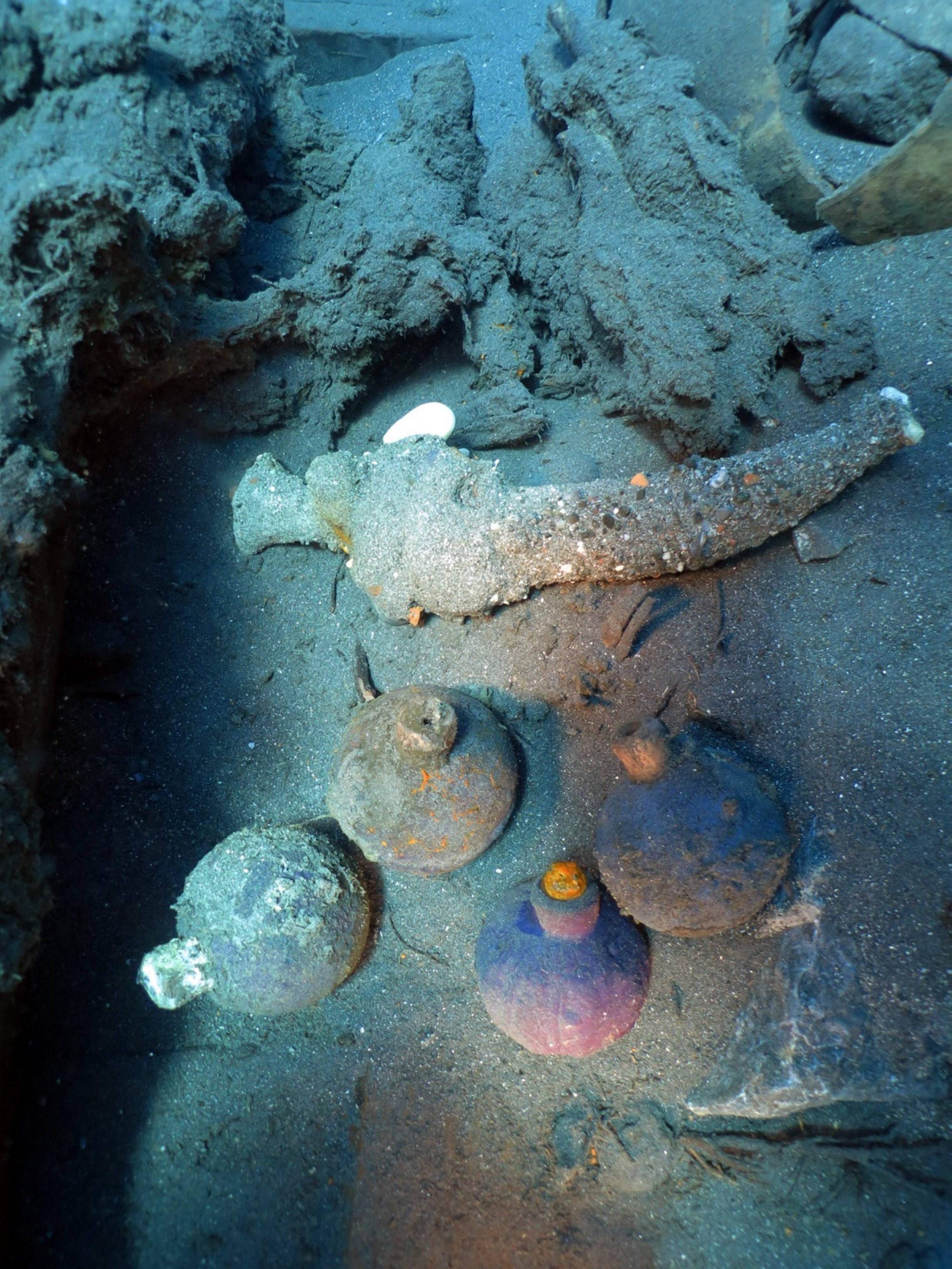 Among the recovered items are 36 packaged Ottoman rifles, over 50 grenades, swords, daggers, pistols and more than 3,000 bullets. These armaments conclusively identify the vessel as an Ottoman state ship. Notably, a distinctive Ottoman dagger was found during a small excavation on the ship’s outer hull. Although covered in sediment, its curved design and decorated handle reflect authentic Ottoman craftsmanship and await further conservation to reveal more details.