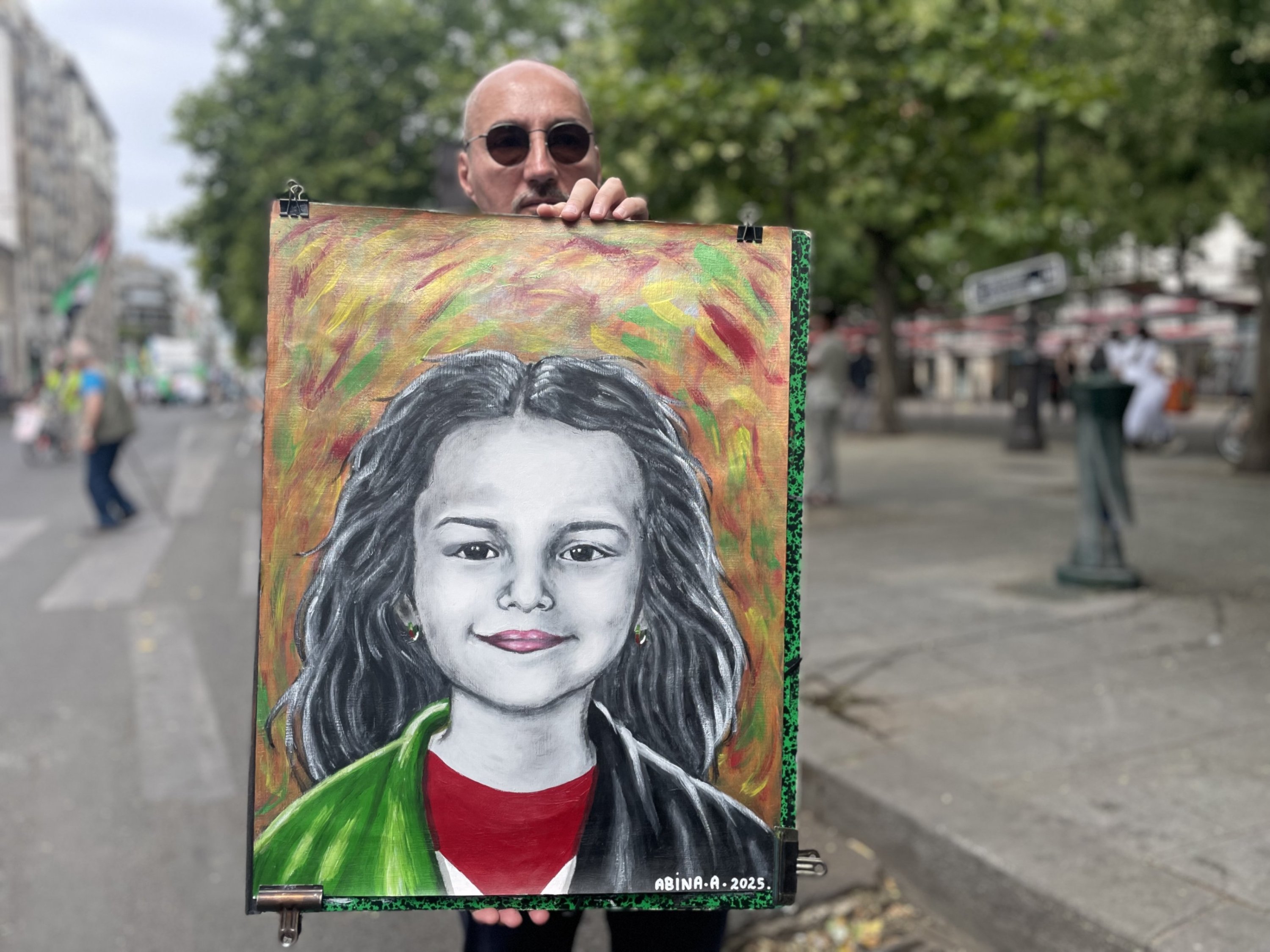 On July 5, Abina participated in a demonstration held in Paris, France, under the slogan "Stop the Genocide in Gaza." Throughout the protest, he carried two portraits depicting the brutal reality of Israel’s assaults on Gaza. One of the portraits featured Hind Rajab, a 6-year-old Palestinian girl killed by the Israeli army on Jan. 29, 2024.