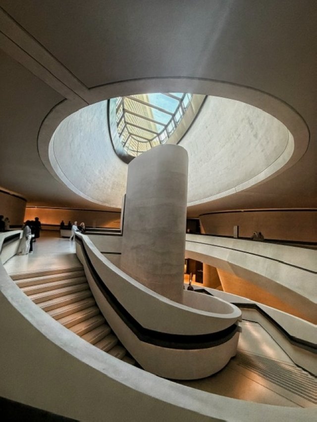 The architectural genius here is more than just a display of wealth. Designed by Foster and Partners, these wings are actually modern thermal chimneys based on the region's ancient “climate control” system, the badgir (wind tower) technology. While the museum uses high technology to negotiate with the desert heat, the “space station” feel inside perhaps whispers: “Our past was so advanced that we can only describe it with the architecture of the future.”