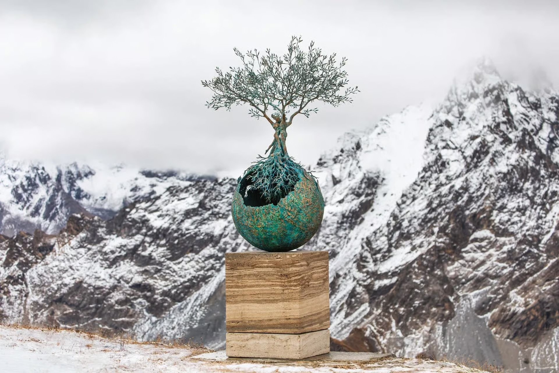 Andrea Roggi brings a completely different, yet equally poetic energy to the alpine landscape. Born in 1962 in Castiglion Fiorentino, Tuscany, Roggi was drawn early to painting and poetry before committing fully to sculpture. A pivotal moment in his artistic life came during a visit to Florence, where Masaccio’s "The Trinity" fresco in Santa Maria Novella profoundly affected him. From that moment on, Roggi pursued sculpture as a spiritual and philosophical language.