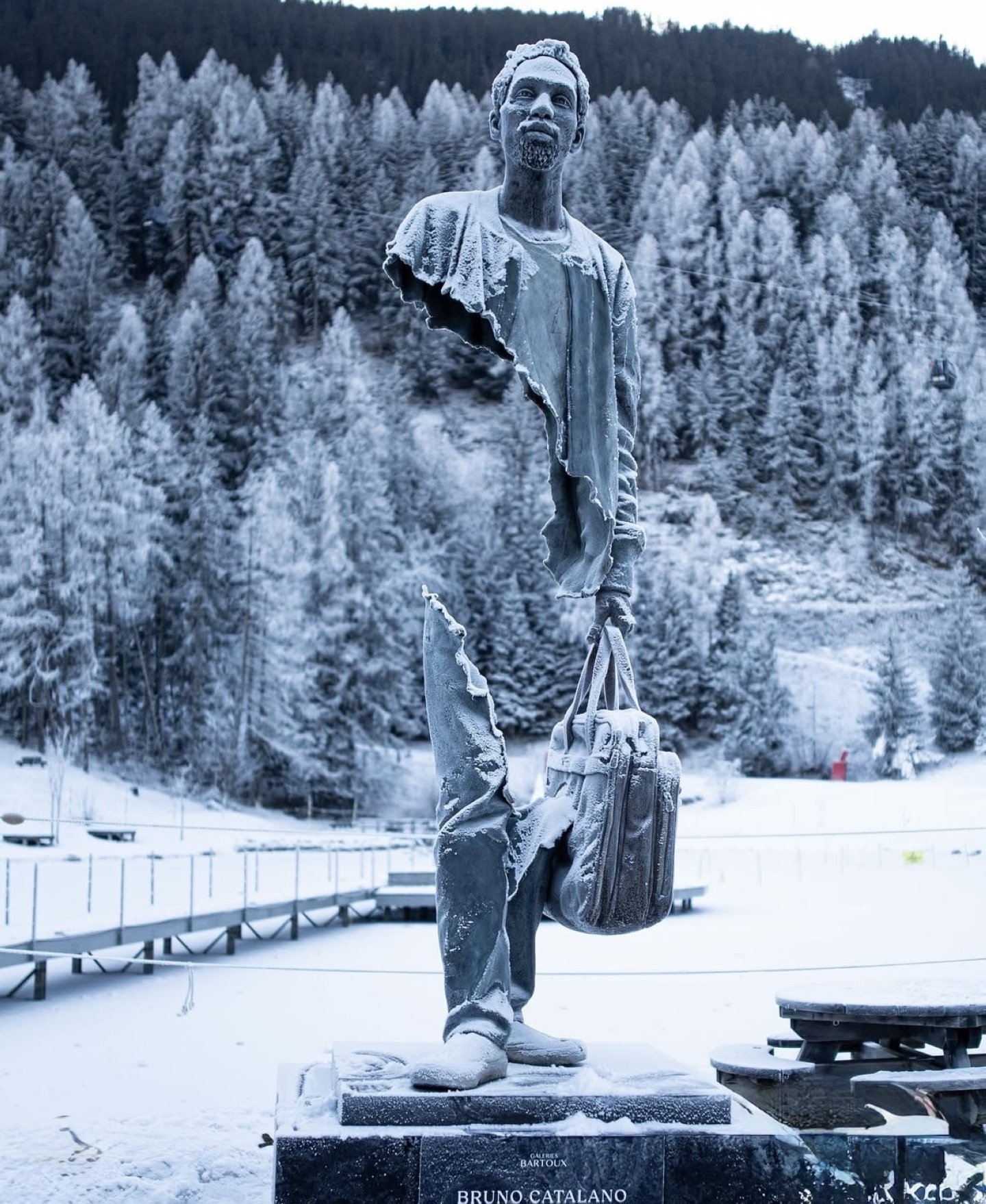 His sculptures freeze time around anonymous trajectories. They do not tell a single story. They ask questions. Who are these travelers? What have they left behind? What are they carrying beyond their luggage? In Courchevel, surrounded by mountains and motion, Catalano’s figures feel both fragile and determined, suspended between past and future.