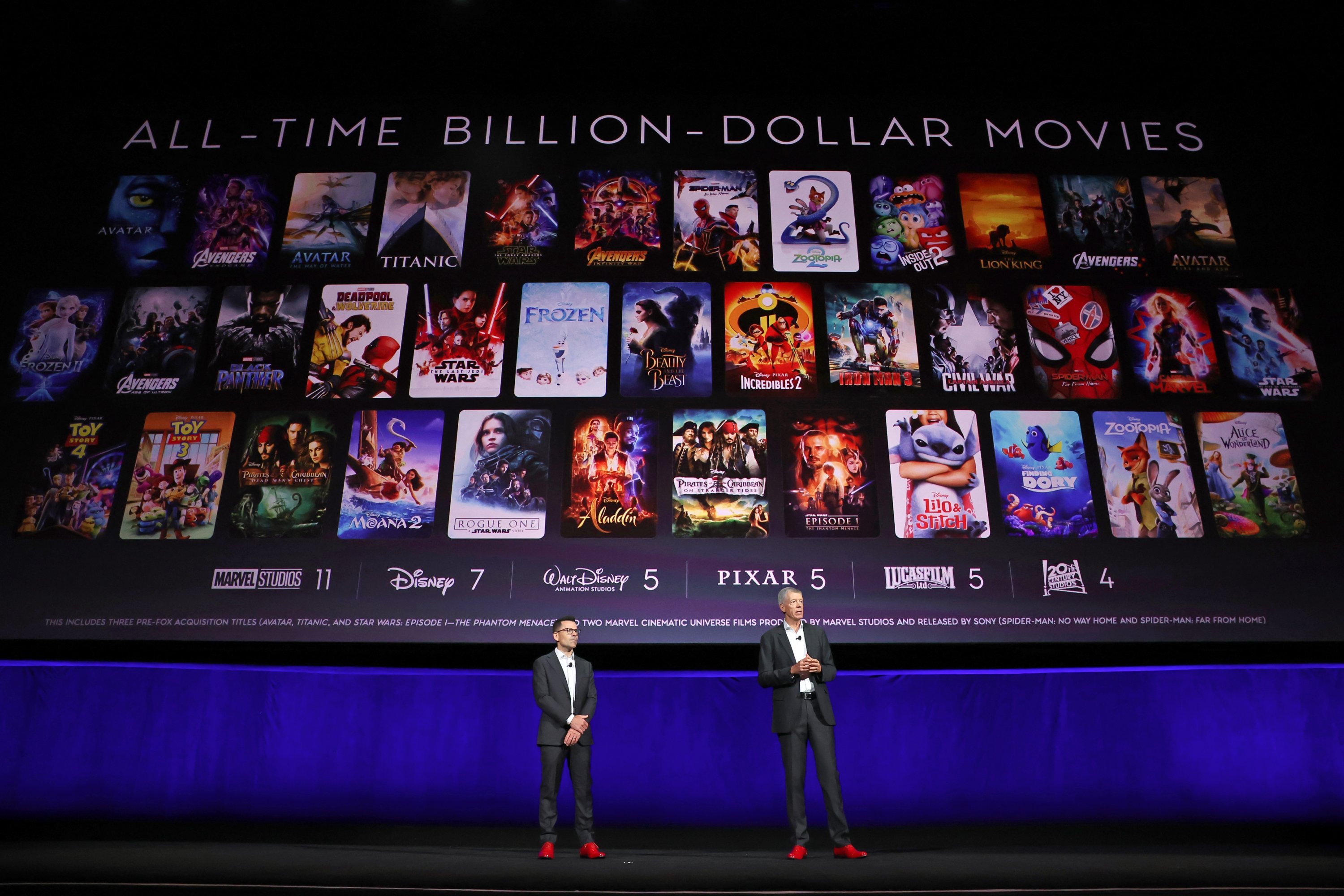 (L-R) Matt Kalavsky, SVP, Domestic Distribution, The Walt Disney Company and Andrew Cripps, Head of Theatrical Distribution, Disney Entertainment Studios speak during the Walt Disney Studios presentation at Cinemacon 2026 on April 16, 2026, Las Vegas, U.S., April 16, 2026. (Getty Images Photo)