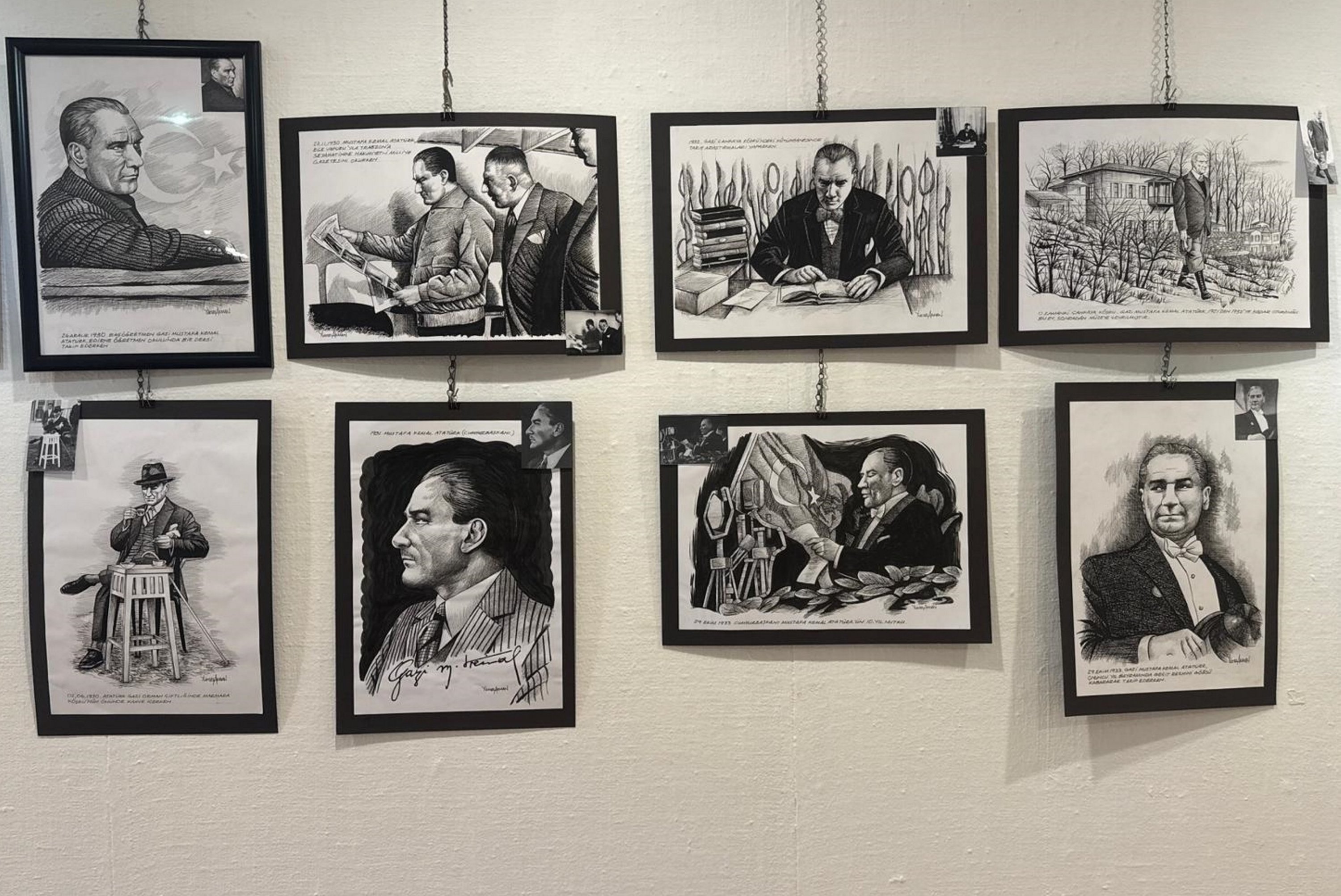 “I illustrated Atatürk from his home in Thessaloniki to his final days,” Akman said, noting that each drawing is accompanied by detailed captions providing historical context. This allows visitors to engage with both the artistic and historical dimensions of the exhibition.