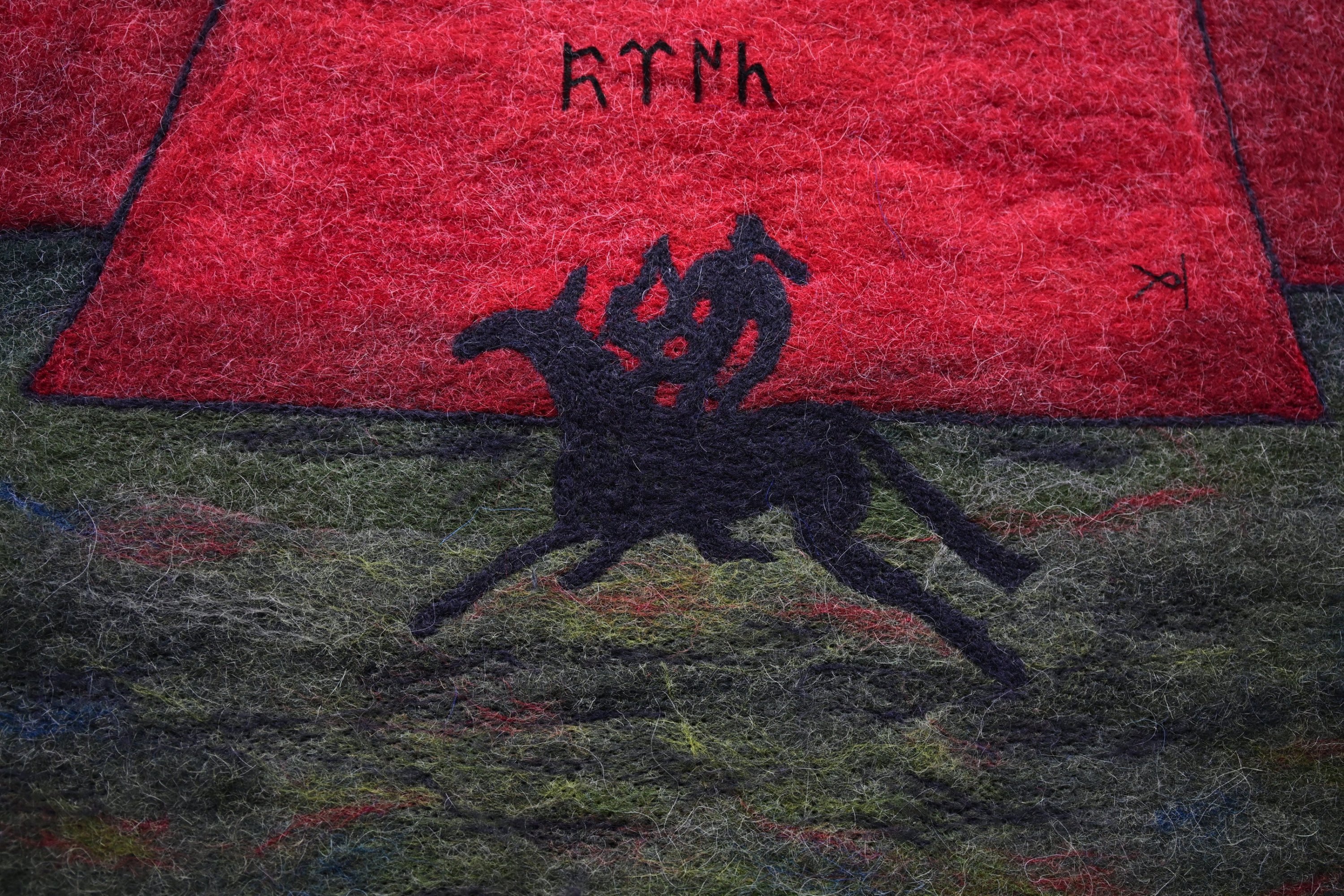 Using rock carvings made by proto-Turkic peoples from the Altai Mountains to Anatolia as inspiration, Sağlamer spent 1.5 years creating felt artworks that portray the historical journey of Turkish civilization.