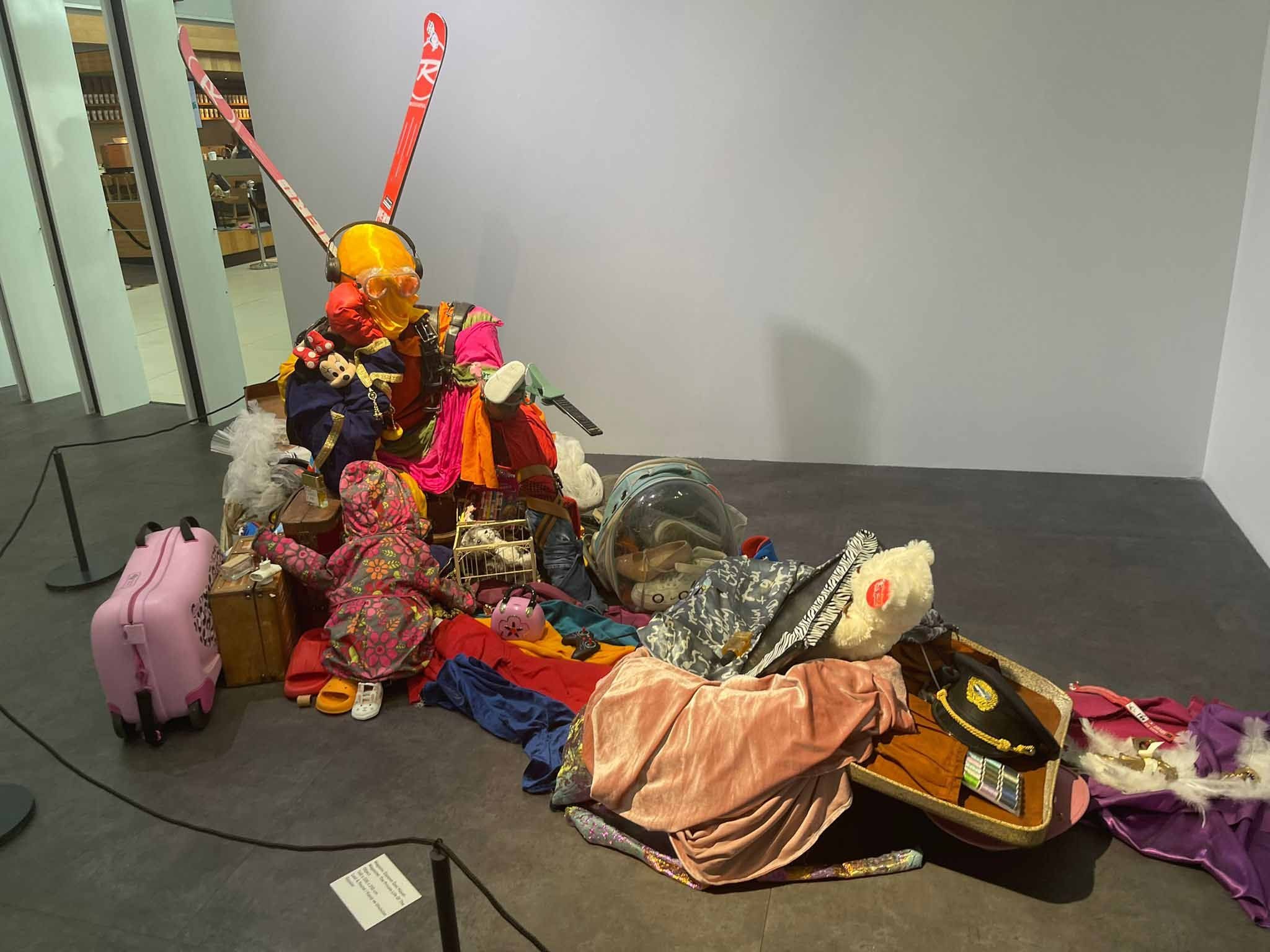 One of my favorite pieces is the sculpture made of stacked suitcases. Another detail I loved is seeing a version of Beyazıt Öztürk’s iconic TV format staged inside the airport like a studio set. It’s familiar and surreal at the same time. A showman’s world meeting a traveler’s world.