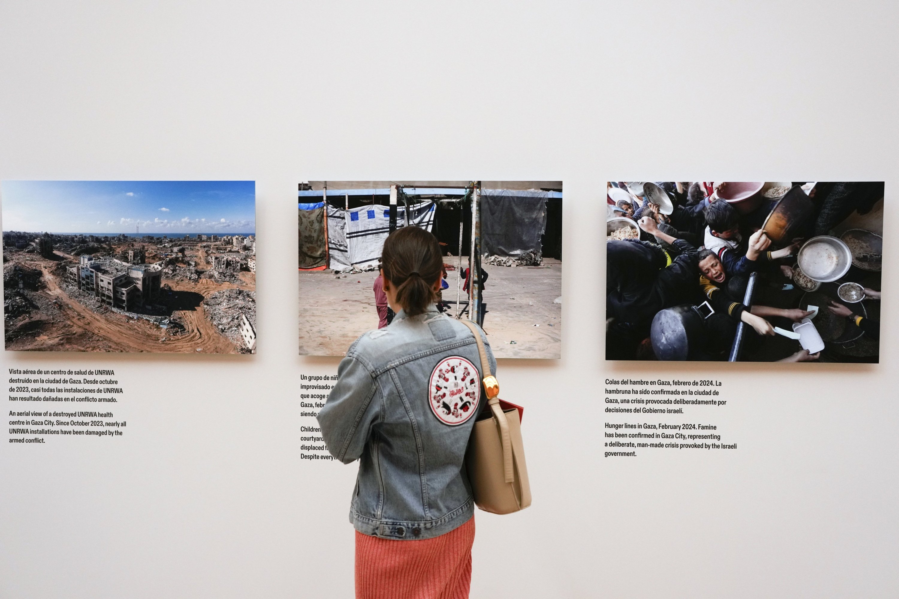 "These are not distant images. They are human gazes that compel us to recognize the dignity of a people who are suffering," Culture Minister Ernest Urtasun said at the exhibition's opening.