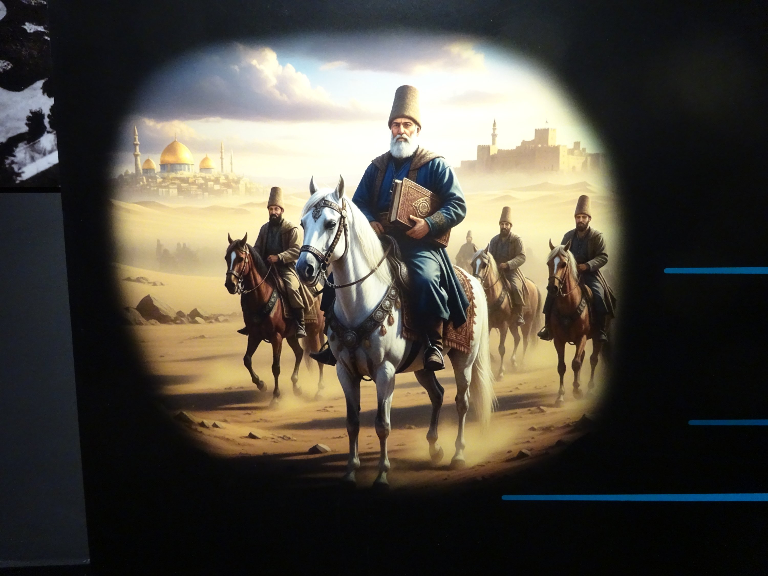 A rendering of the journey of Mevlana with his father in the temporary exhibition of the Afyonkarahisar Museum, Afyonkarahisar, Türkiye, Jan. 25, 2026. (Photo by A. Peter Dore)