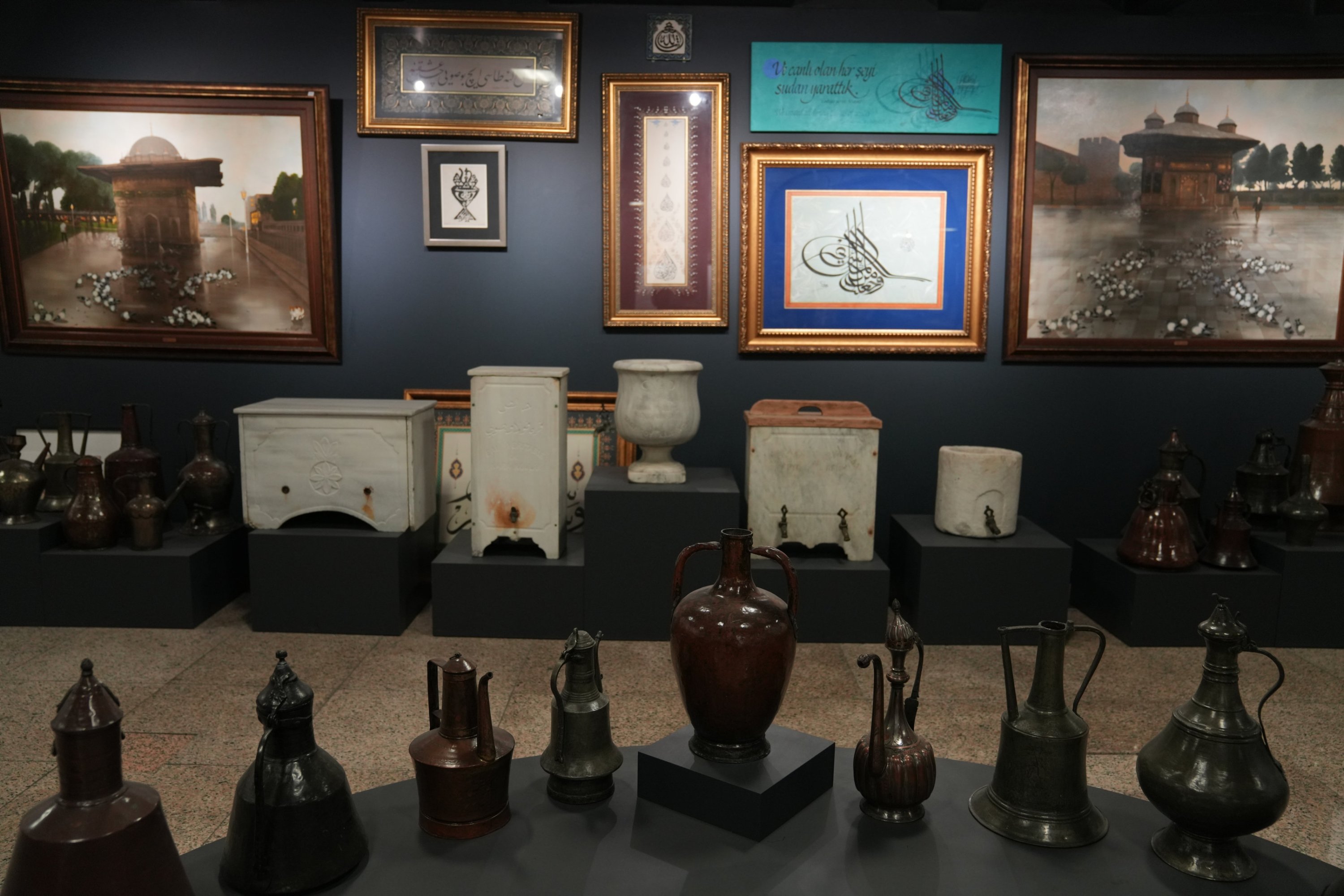The museum explores daily life connected to water, including bathing, drinking, healing, and religious practices. Its collection features water vessels, fountains, public drinking fountains ("sebils"), as well as paintings, engravings, postcards and ephemera.