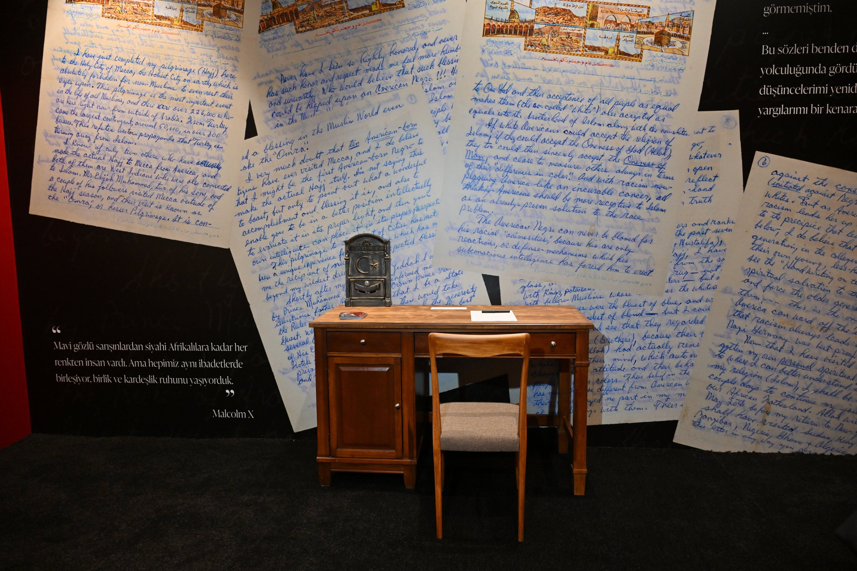 From there, the day continued at the Atatürk Cultural Center (AKM) in Taksim, where “Echoes” brings Malcolm X and Şule Yüksel Şenler into the same frame – two figures rarely placed together yet unexpectedly aligned. Malcolm X confronted racial injustice in the United States and shaped a broader global anti-colonial discourse, while Şenler challenged restrictions on women’s public visibility in Türkiye, particularly during the headscarf debates. Both became influential voices for marginalized communities and reshaped national conversations about dignity, belief and public space. Encountered immediately after the Gaza-focused exhibition, their stories highlighted recurring global patterns of silencing and resistance.
