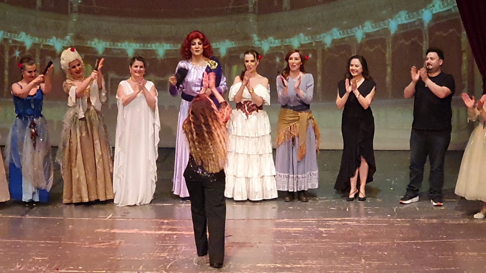 As for Arda Aktar, I had previously noted when I saw him as Lord Enrico in Lucia di Lammermoor that he has an ongoing issue with vocal volume. This time, even with piano accompaniment instead of an orchestra, his performance again resembled that of a mime artist: There was image, but little to no sound. His vocal instability was especially apparent in the upper register. However, I quite appreciated his acting that evening. His portrayal of Donna Agata – a female role performed by a baritone in disguise – was memorable, evoking less the character itself and more a sharp, flamboyant persona reminiscent of Huysuz Virjin, a famously abrasive Turkish drag figure.