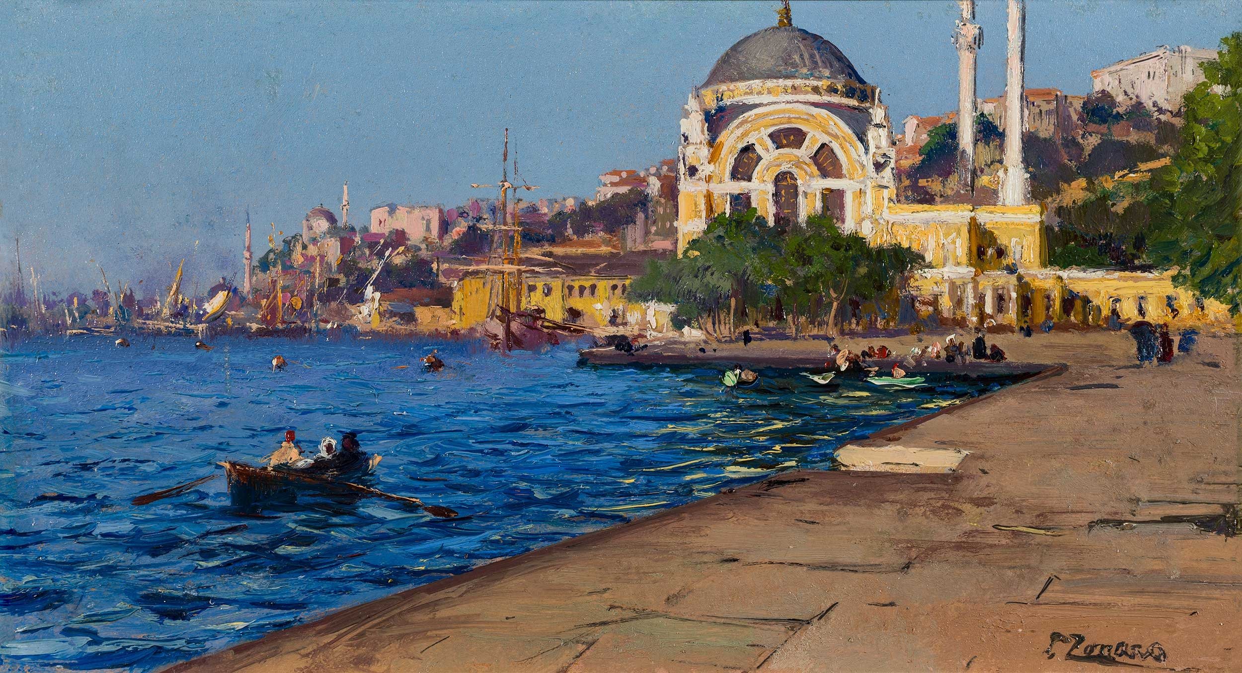 Another painter, less fortunate in recognition than Zonaro, is Leonardo de Mango. Born in Italy, de Mango lived in Istanbul for many years, transferring to his canvases the city’s diverse neighborhoods, glimpses of daily life and the light of the Bosporus. Makzume was part of the team that coordinated de Mango’s retrospective exhibition held at Dolmabahçe Palace in the early 2000s, thereby introducing his works to wider audiences. This event contributed to evaluating the painter not only in a local but also in an international context.