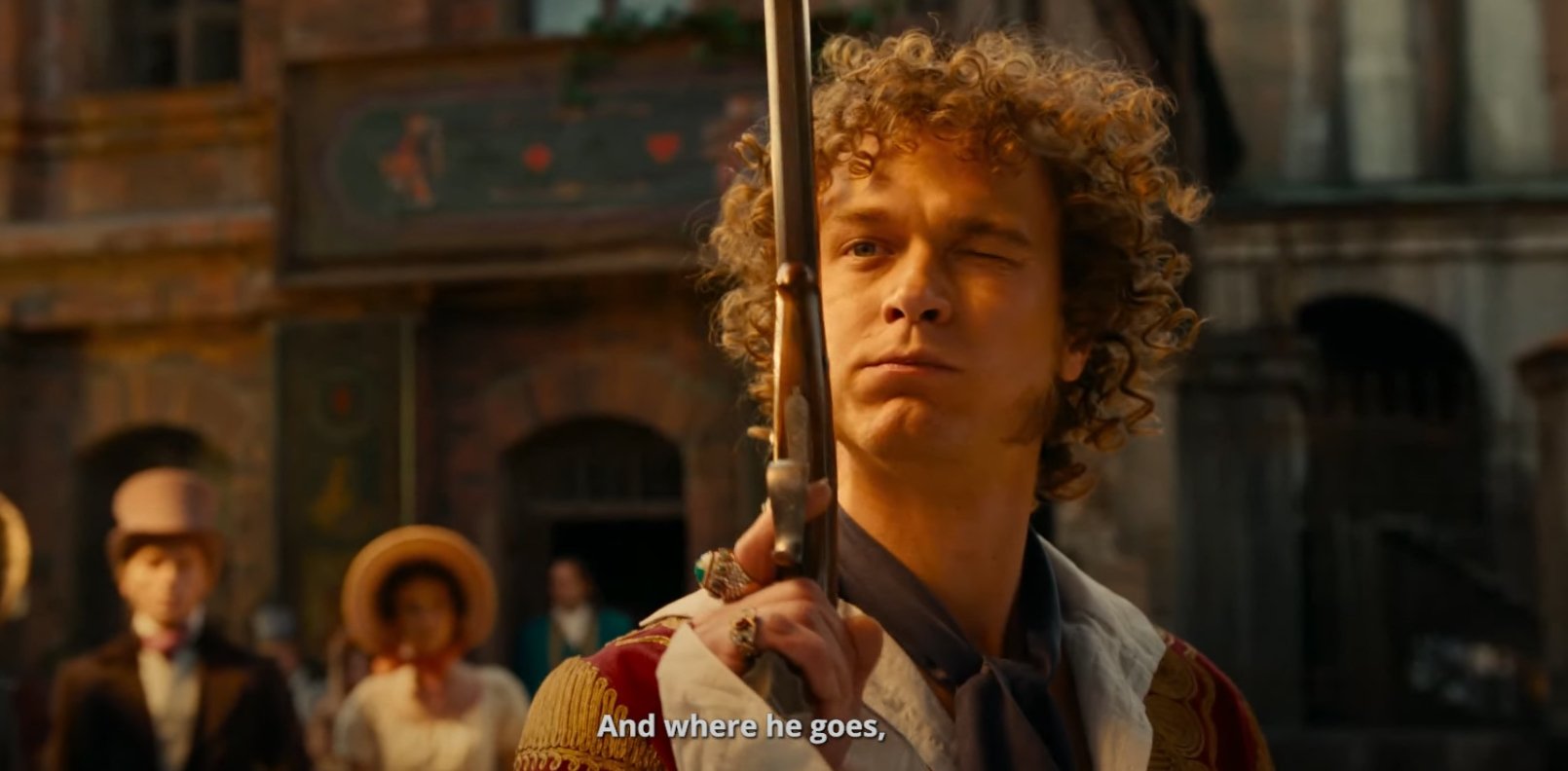 The film opens with a bookshop in 19th-century Saint Petersburg, the then-capital of Russia, with crowds of book buyers eager to snap up Pushkin’s latest work, setting up how great a literary star Pushkin was in his own lifetime. It then jumps back to 1814, when Pushkin, played here by Kay Aleks Getts, is a teenage student at the lyceum set up by the Tsar Alexander I. Pushkin here is shown as a boy who justifies a later description of him by a fortune-teller as “wild” souled. This teenage Pushkin verbally challenges, through a rap battle, his teacher and physically challenges a fellow school boy with whom he fights a non-lethal duel. His unbridled nature is not unruliness, though. The film sets Pushkin up as a devotee of freedom, who bristles at the discipline of the school.