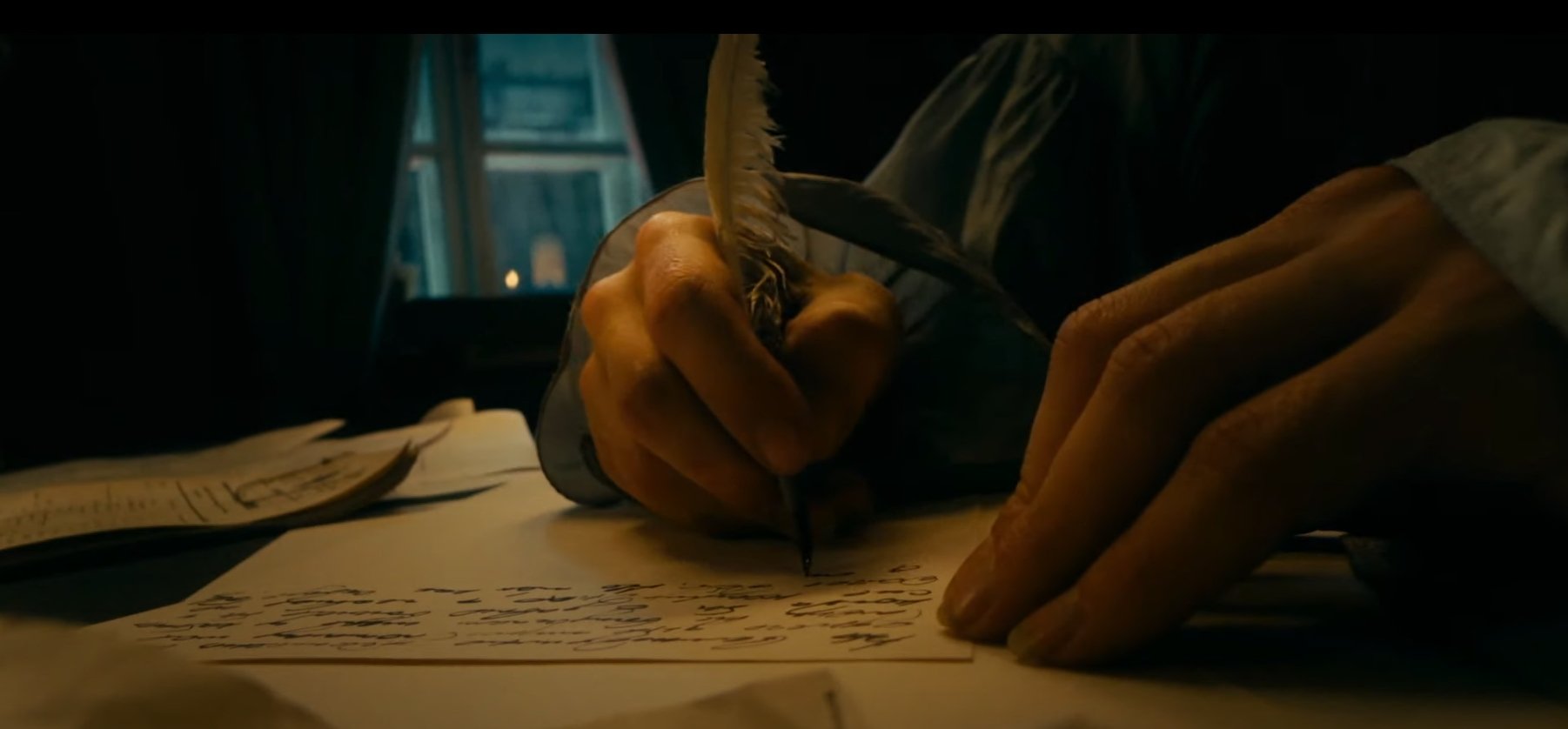 Then the film switches time and actors, Pushkin from henceforth is portrayed by Yura Borisov, bringing us forward a few years to Pushkin in Saint Petersburg, where the young poet, with his friends Ivan Pushchin (Ilya Vingororsky) and Konstantin Danzas (Roman Vasiliyev), revels in the night life that the city has to offer, while increasingly making his mark on society as a poet.