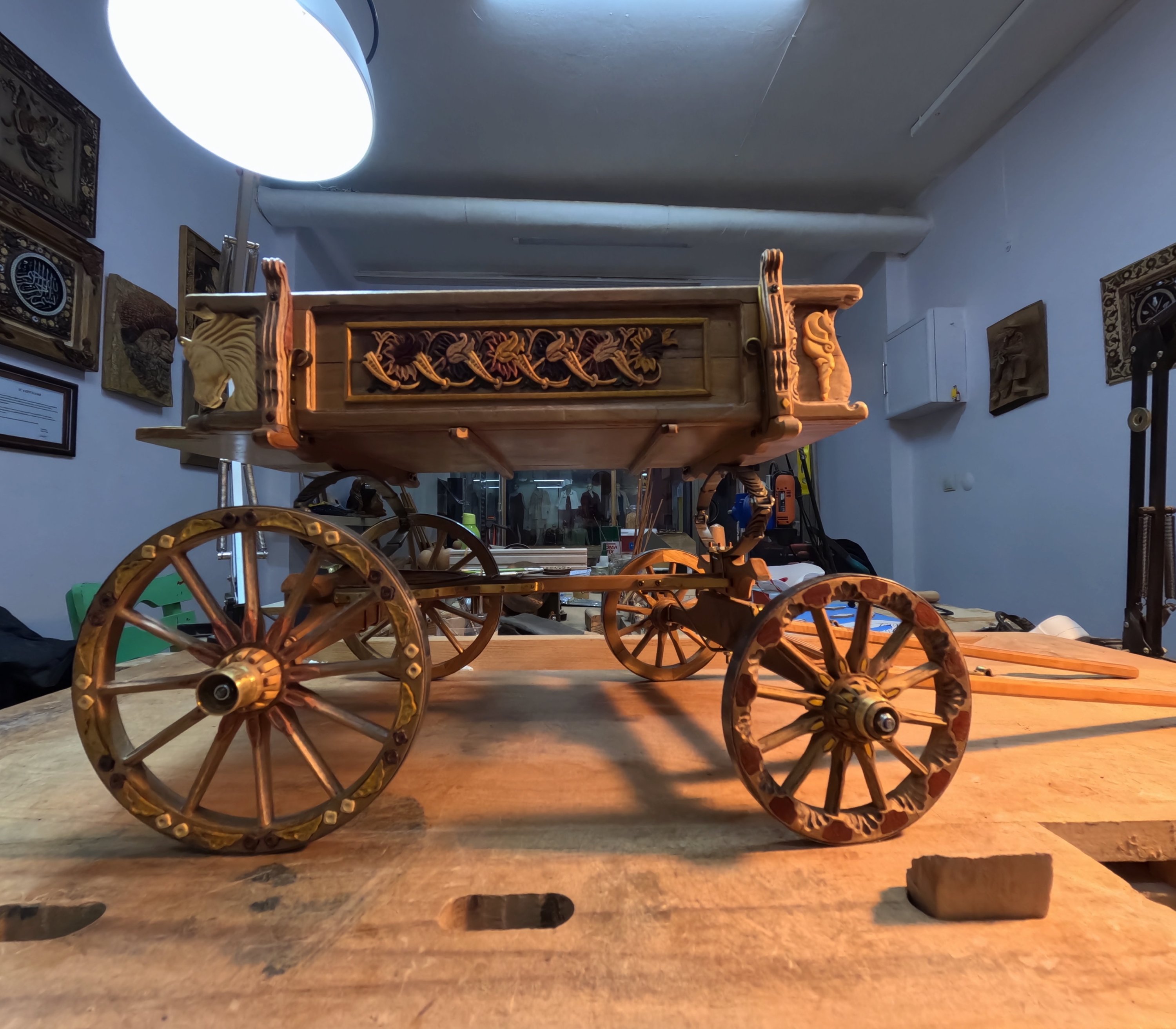 Aslan’s latest work presents the talika at a 1/20 scale, reviving the historic vehicle through intricate craftsmanship. Speaking to Anadolu Agency (AA), Aslan said he began the project about a month ago and incorporated the traditional "naht" carving technique into many parts of the model, including the side panels, frames and wheels.