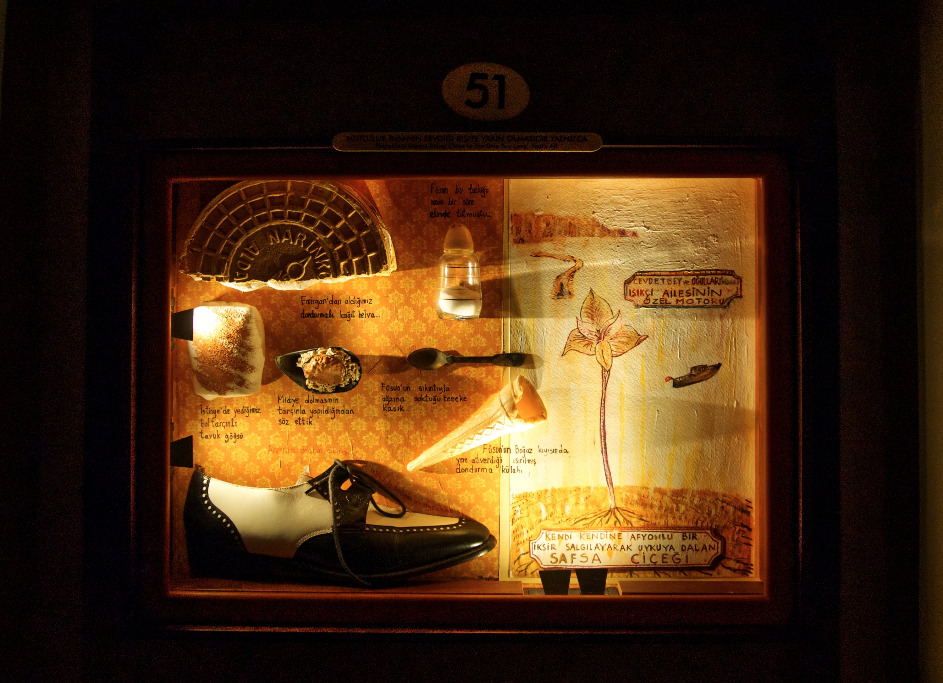 The objects he accumulated over years shaped the novel's characters. The 4,213 cigarette stubs that Füsun lights and stubs out, each one labelled by date and mood, arranged behind glass, transformed into the material form of grief. Meltem soda bottles, cinema tickets, small pieces of jewellery, items of clothing. Each carries within it both Kemal's obsession and the Istanbul of that era.