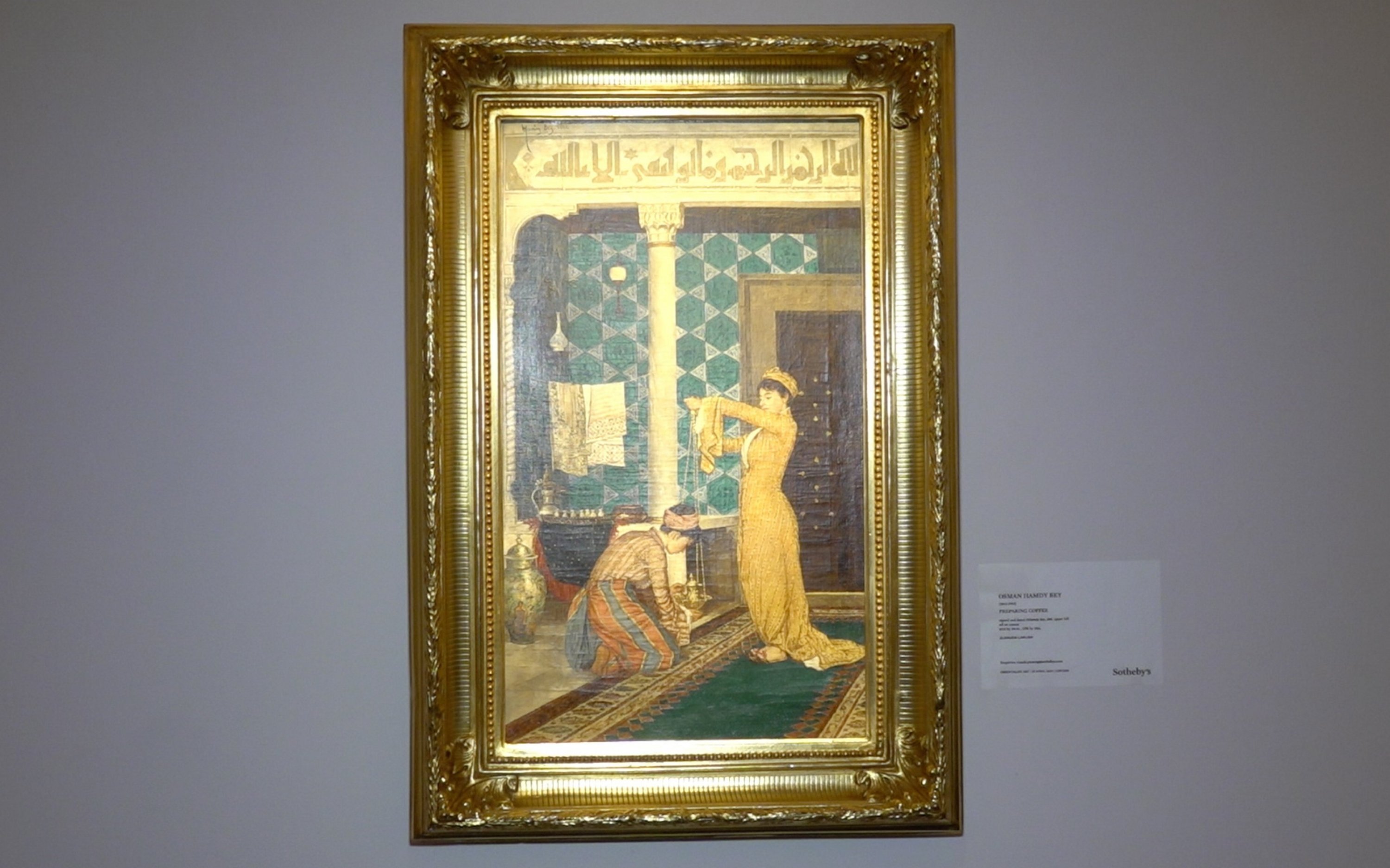 Last May, Osman Hamdi Bey's painting named “Preparing Coffee” dating back to 1881 was sold at Sotheby's auction house in London for 1.16 million pounds ($1.58 million) in an auction titled “Orientalist Art.” In addition to becoming the most expensive Osman Hamdi Bey artwork ever sold, it also became the most expensive work of Turkish painting. In the painting, the two female figures, dressed in traditional Ottoman clothing, were depicted preparing coffee in an interior space believed to be a fictional harem chamber in Topkapı Palace. The painting reflected the classic style of Osman Hamdi Bey through the tiles on the walls, the mother-of-pearl inlaid wooden door and a section of the 88th verse of the Surah Hud written in Kufic script above.