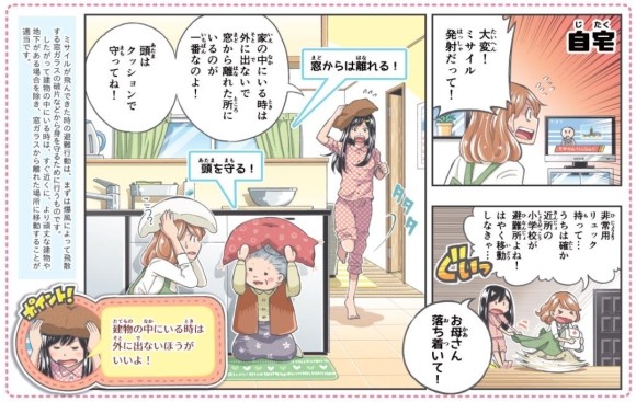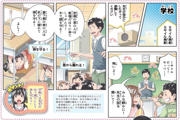 The four-page comic, created by local manga artist Manabu Yamamoto, details what the island's 5.5 million residents should do when they hear sirens, loudspeaker messages and emergency phone alerts about North Korean missile launches.