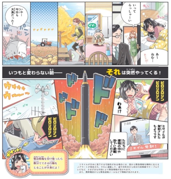 "Cover your head". That's the advice offered in a manga comic published by local authorities in Japan describing what to do in the event of a North Korean missile strike.