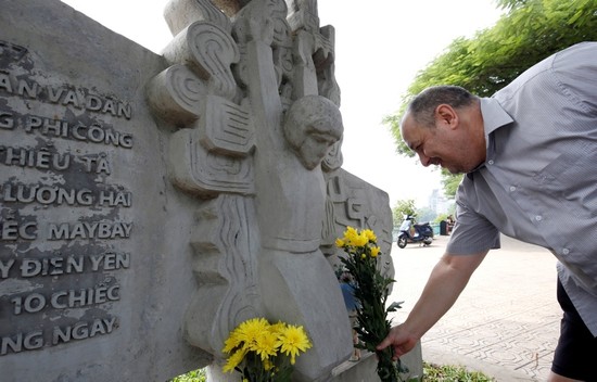 Gibb was one of several U.S. citizens living in the Vietnamese capital to visit the monument with tributes. Most brought flowers. One man offered a folded U.S. flag.
