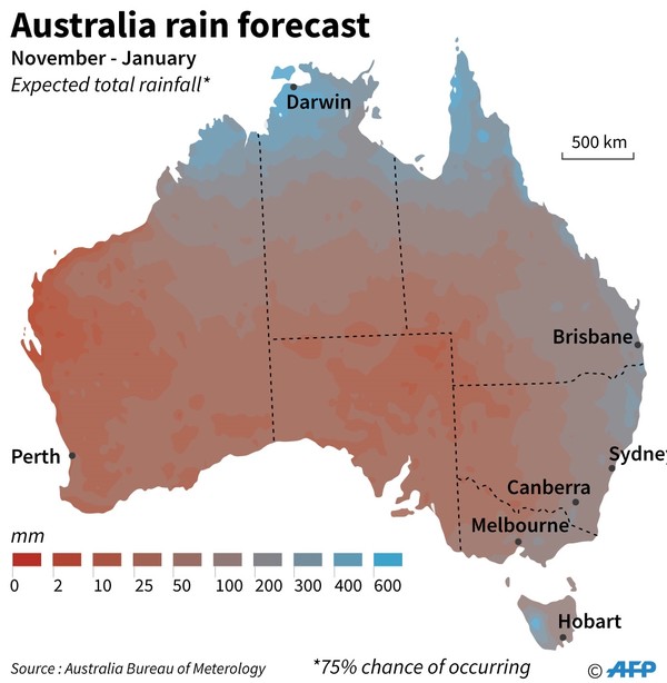 The weather bureau's long-range forecasts chief Andrew Watkins told AFP more areas are drying out, such as in Victoria, southeast South Australia and the southern coast of Western Australia states.