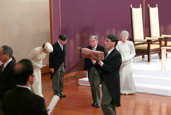 In the "Room of Pine" in Tokyo's Imperial Palace, the popular 85-year-old performed the abdication ritual in the presence of the imperial regalia -- an ancient sword and sacred jewel that are considered to legitimize an emperor.