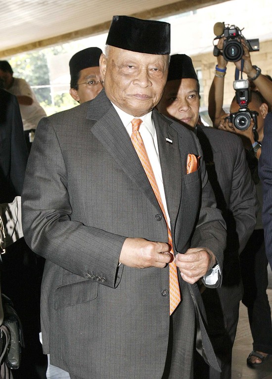 This file photo shows former King of Malaysia Tun Haji Ahmad Shah of Pahang leaves Pertamina hospital after visiting former Indonesian President Suharto in Jakarta, January 20, 2008.