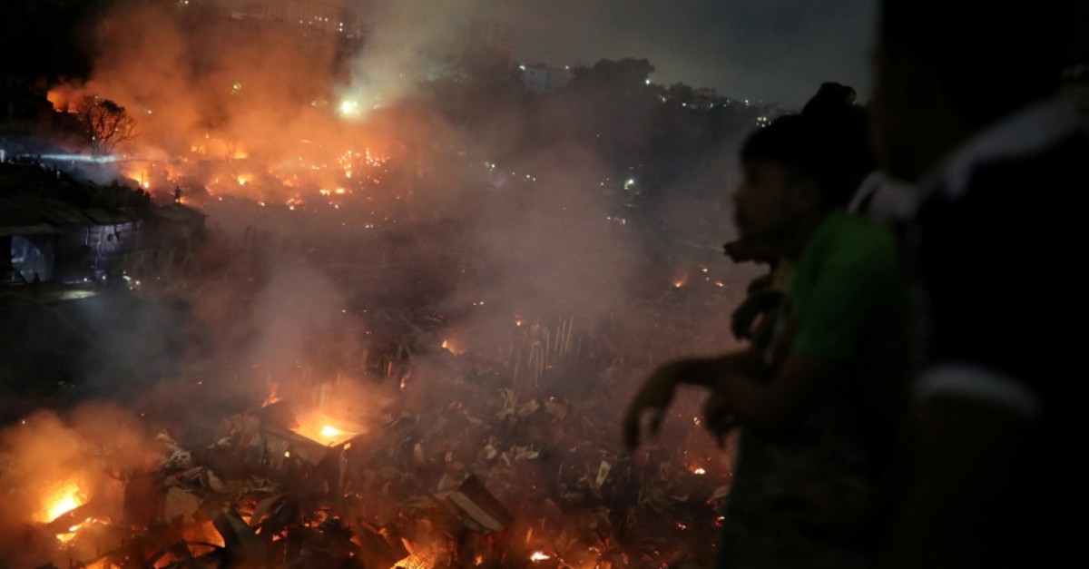 People gather at a rooftop to watch the fire that broke out at a slum in Dhaka, Bangladesh, August 16, 2019. (Reuters Photo)